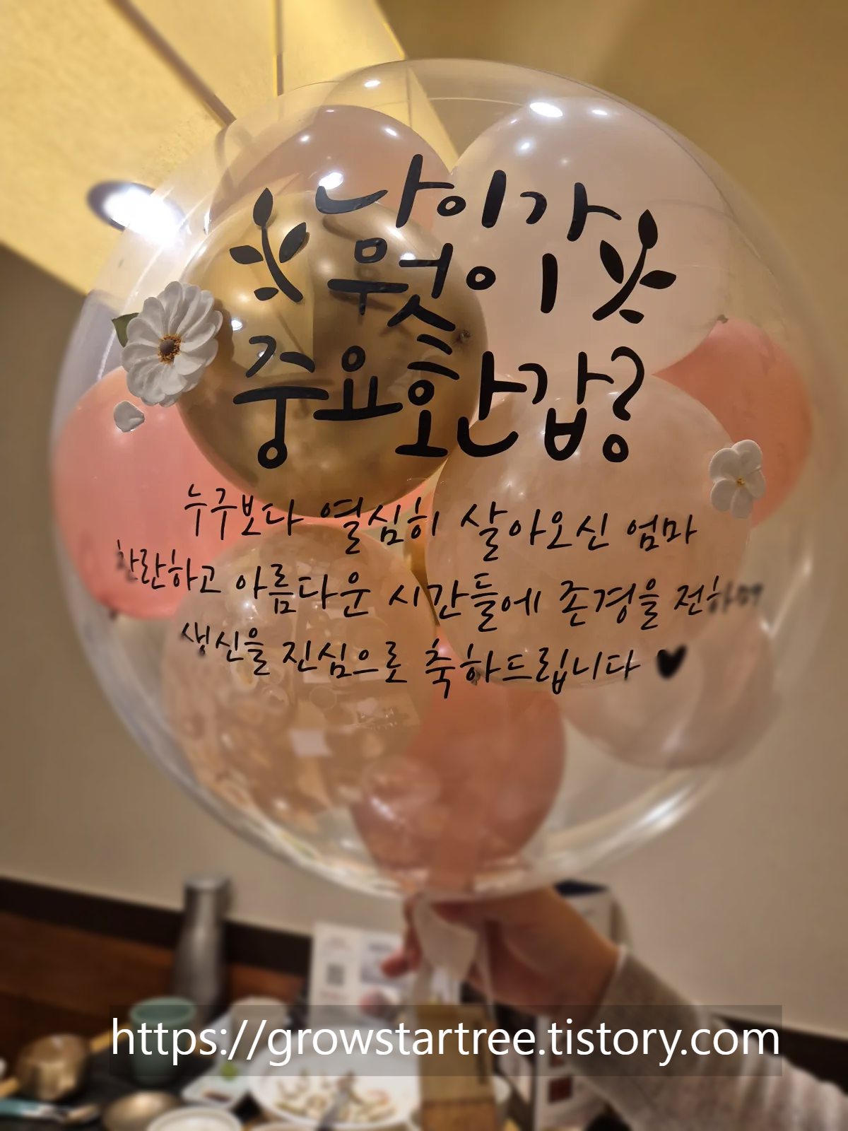 엄마는 금목걸이와 용돈풍선을 받으시고 무척 기뻐하셨답니다. 준비한 보람이 있을정도로 정말 많이 좋아하셨어요.