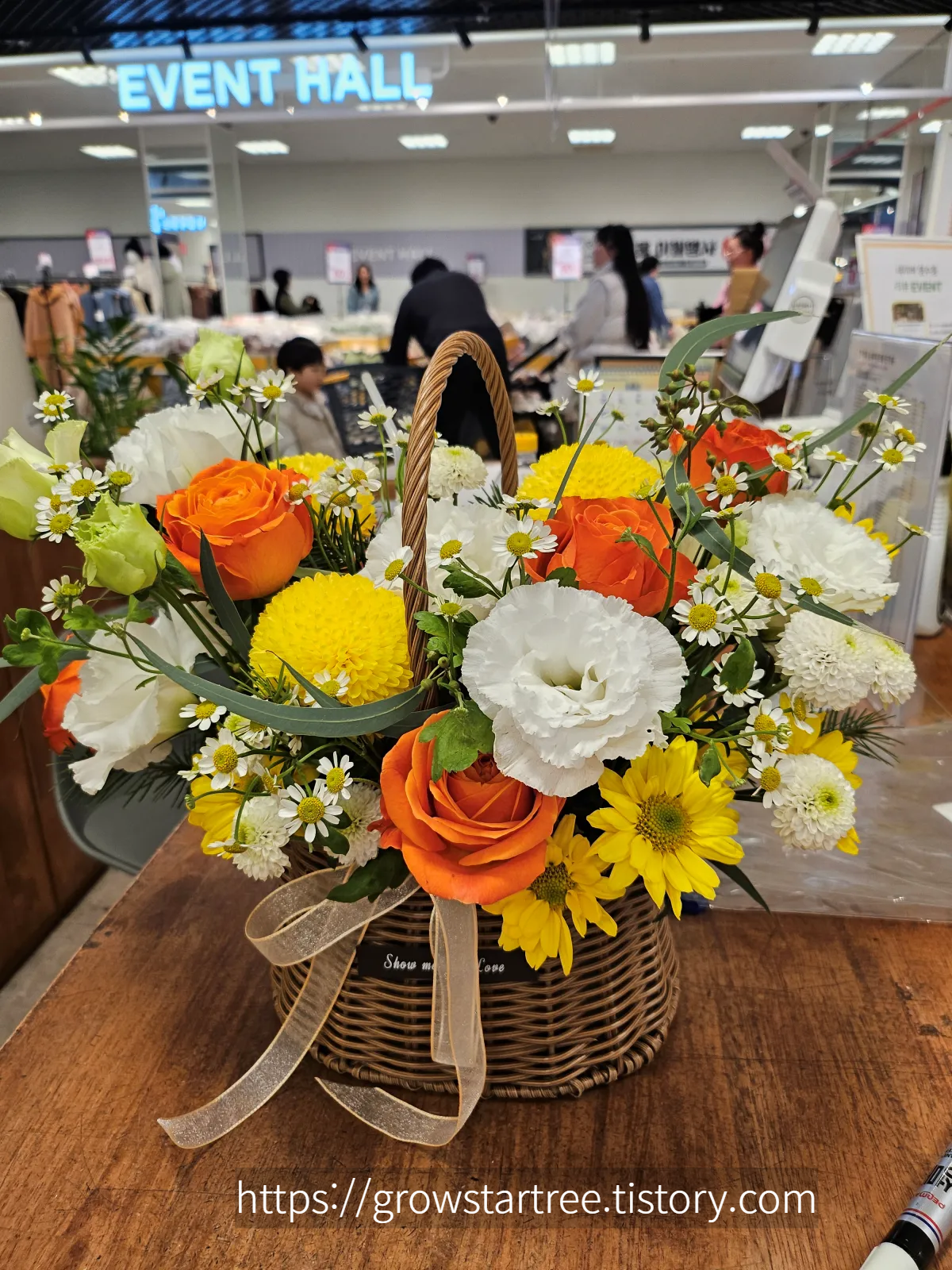 이번에 엄마의 환갑을 준비하며 폭풍 검색을 하다보니 이마트 꽃집에서 노랑, 주황, 흰색의 색감으로 꽃바구니를 주문하신분이 올려두신 블로그가 있는거에요. 포스팅을 보자마자 '오~ 이거다!!!!'하며 꽃집은 바로 여기로 정했어요!!