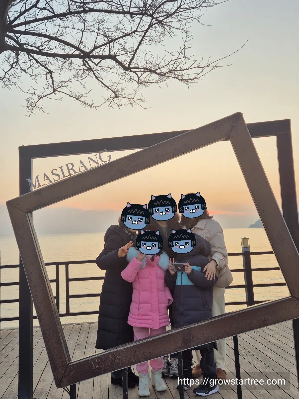 포토스팟에서 사진찍으니까 노을이 예쁘게 나와요. 바다와 노을이 함께 보고싶을 때 마시안해변으로 나들이를 떠나보면 어떨까요.