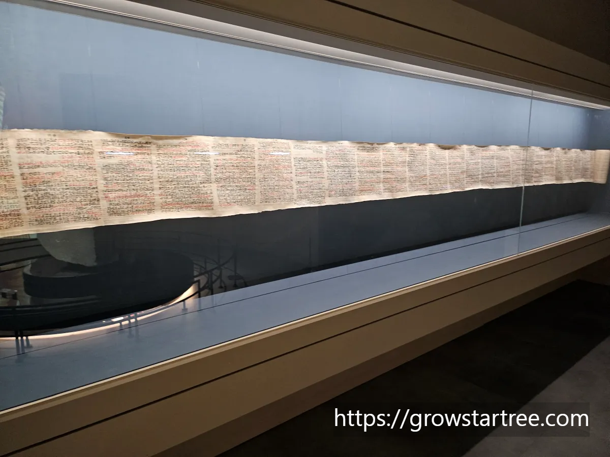 사각형모양의 파피루스를 길게 이어 두루마리형태로 만들어서 문서를 기록하는데 사용했는데 박물관의 상설전시실에서 의학내용을 기록한 두루마리 형태의 파피루스를 볼 수 있었어요.